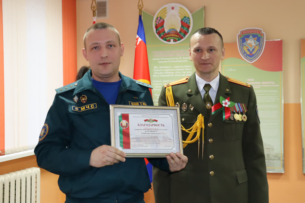 За активную гражданскую позицию в области предупреждения и ликвидации чрезвычайных ситуаций и гражданской обороны, а также в связи с празднованием Дня спасателя объявлена Благодарность начальника Пуховичского районного отдела по чрезвычайным ситуациям работнику УЗ «Марьиногорской ЦРБ» Платонову Михаилу Васильевичу.