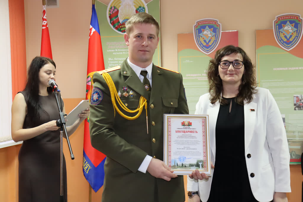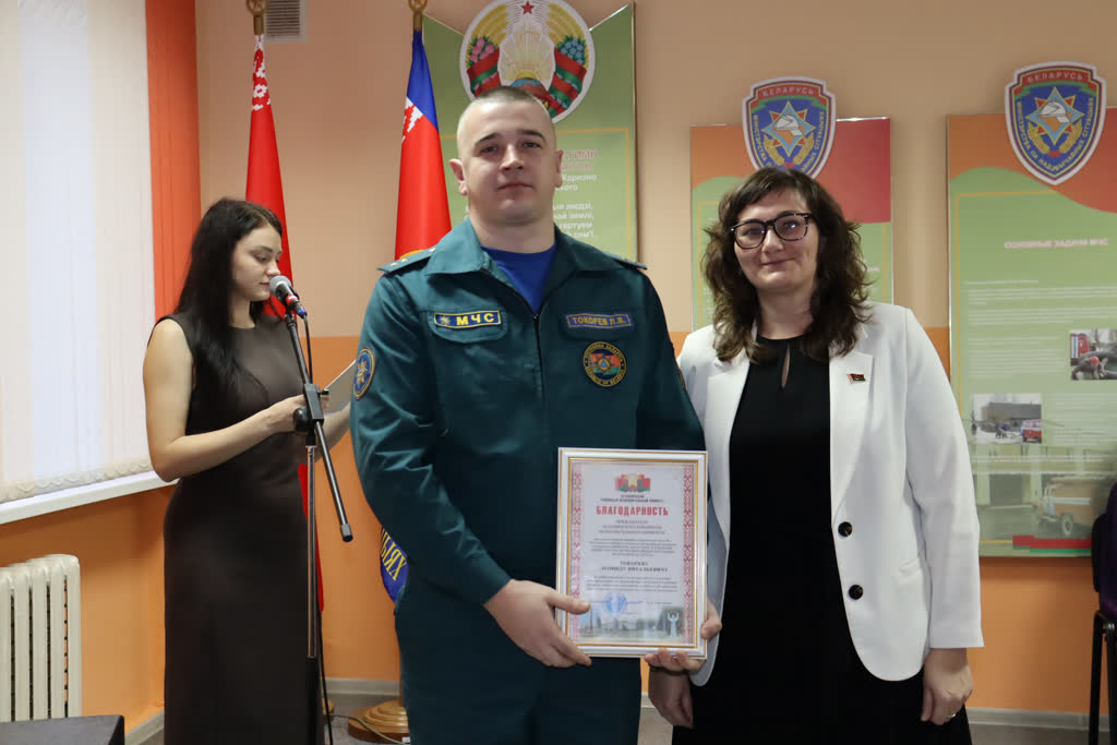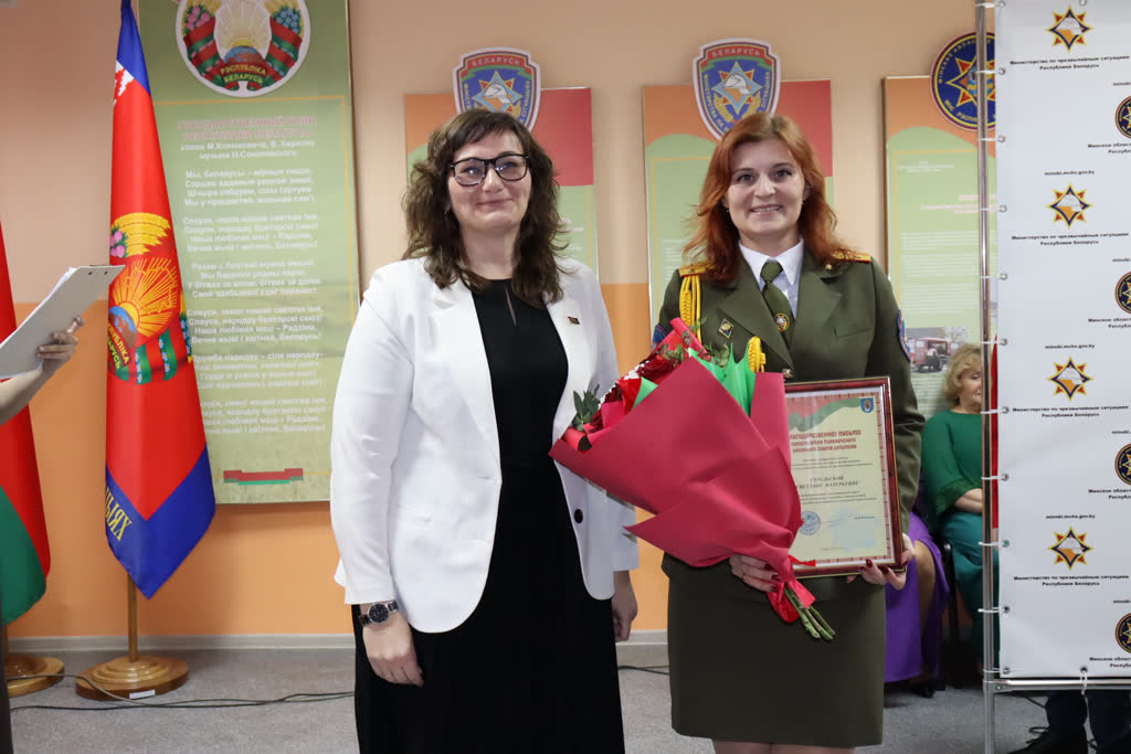 За образцовое исполнение служебных обязанностей, достижение высоких результатов в служебной деятельности Мария Владимировна вручила Благодарности председателя Пуховичского районного исполнительного комитета заслуженным работникам Пуховичского районного отдела по чрезвычайным ситуациям.
