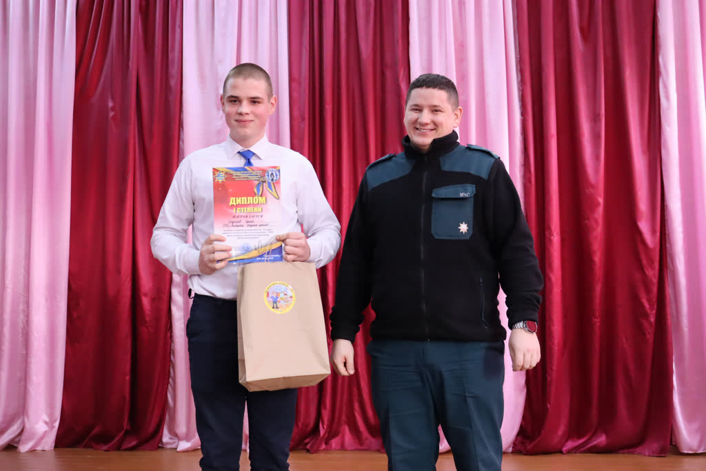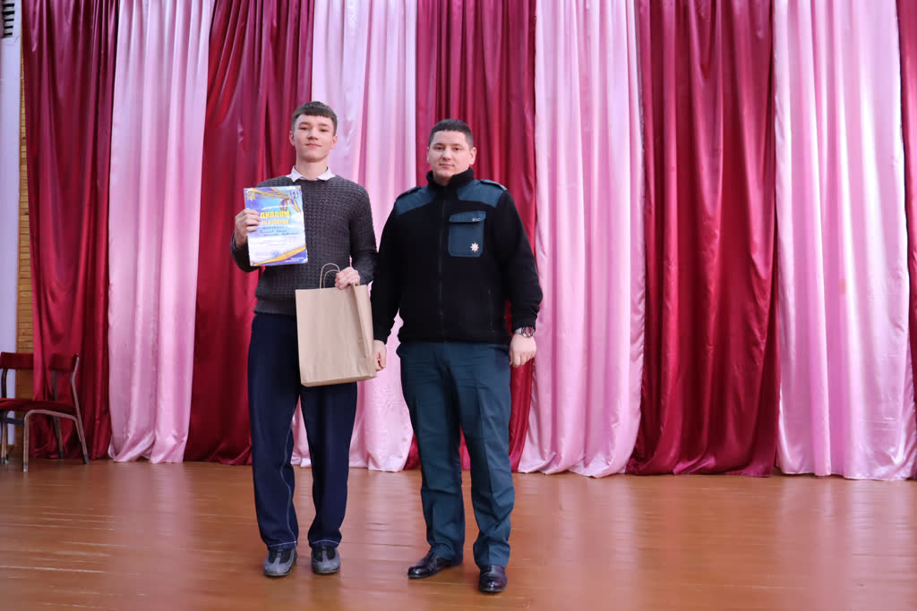 В завершении районного конкурса «Школа безопасности – 2025» заместитель начальника Пуховичского районного отдела по чрезвычайным ситуациям Александр Медведев поблагодарил всех присутствующих за активное участие и наградил победителей дипломами и призами.