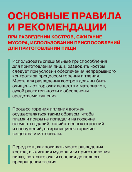 • Не оставляйте костры без присмотра. Тщательно тушите окурки и спички перед тем, как выбросить их.