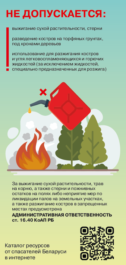 В Пуховичском районе с начала 2025 года уже произошло 1 загорание сухой растительности. К счастью, спасатели Пуховичского районного отдела по чрезвычайным ситуациям вовремя ликвидировали загорание, и никто не пострадал. Однако, в республике зафиксированы случаи, когда на глазах виновников огонь охватывал жилые дома, сараи.