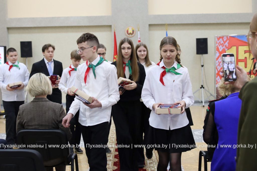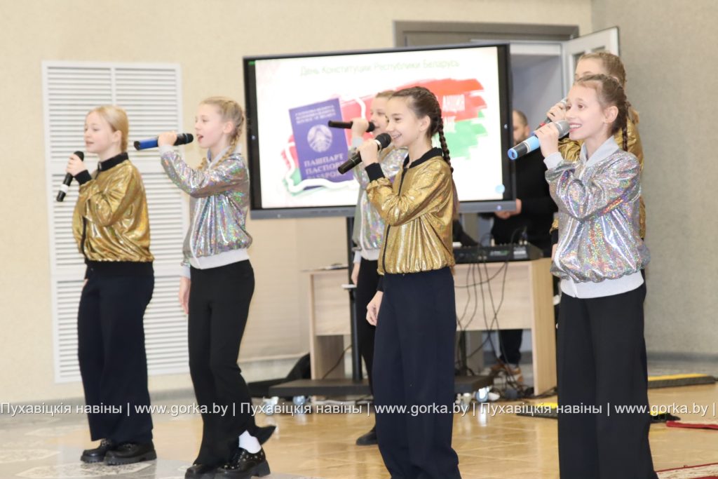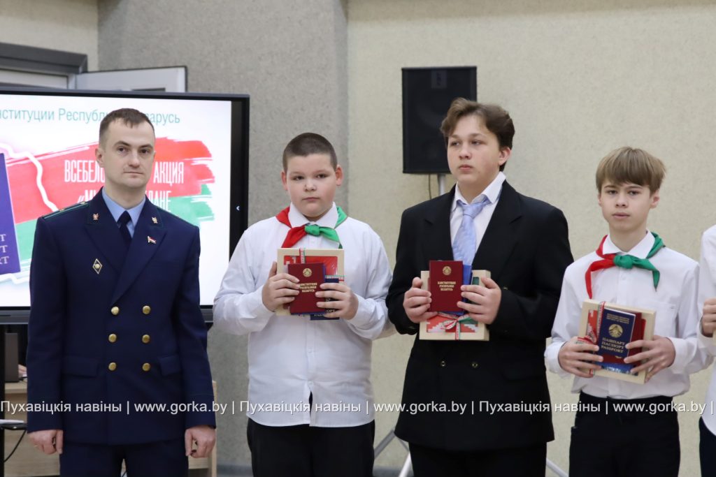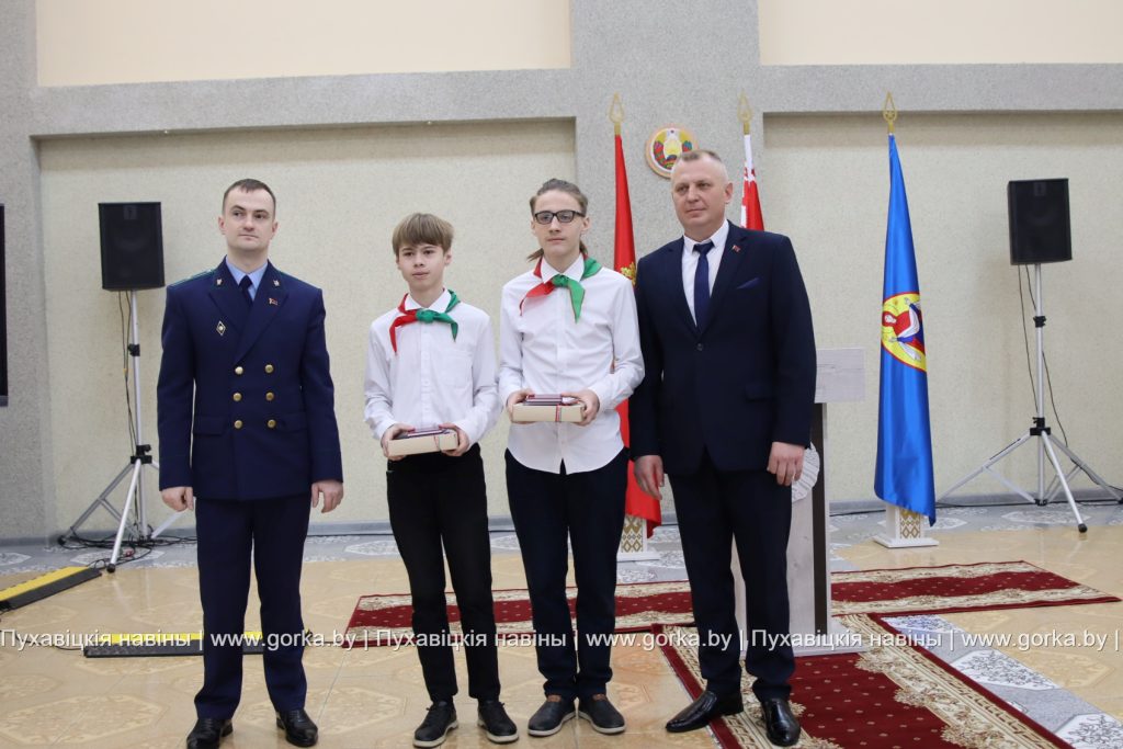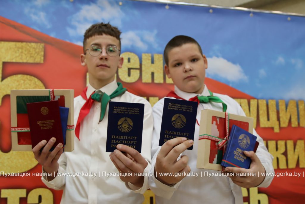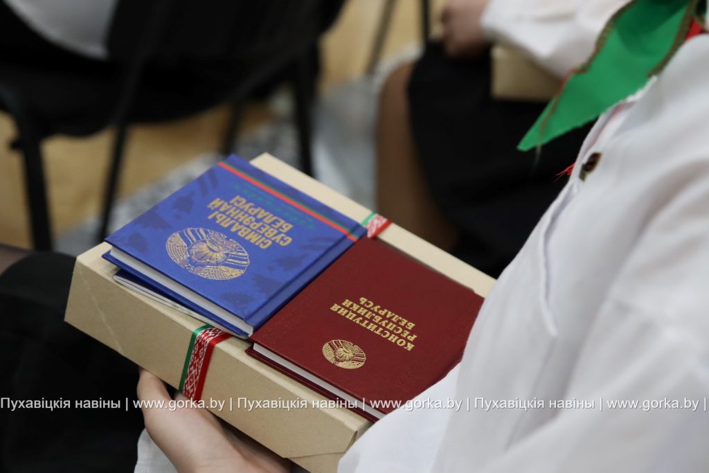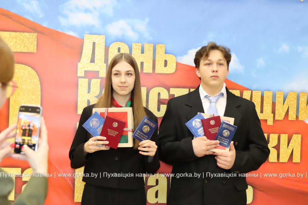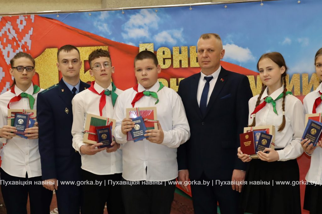 С напутственным словом выступили также заместитель прокурора Пуховичского района Дмитрий Михалкович и председатель районного Совета ветеранов Людмила Бельская. Безусловно, получение паспорта — это важное и значимое событие в жизни каждого человека, которое символизирует шаг во взрослую жизнь. Таким мнением поделились ученицы средней школы № 3 города Марьина Горка Кристина Зубок и Мария Лыхенко. К слову, в рамках акции «Мы — граждане Беларуси» юным пуховчанам от районного комитета БРСМ вручили флаг Республики Беларусь.
