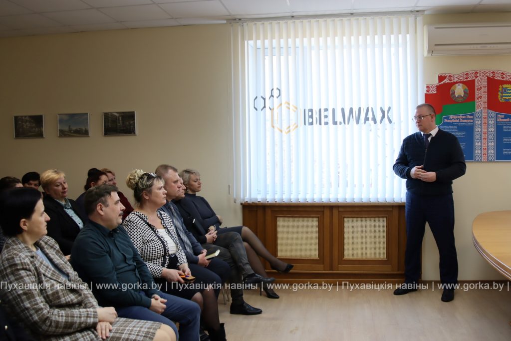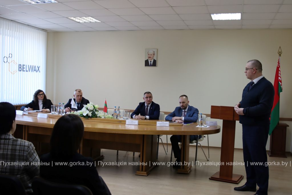 Во время рабочей поездки Александр Шундрик встретился с трудовым коллективом завода горного воска. На встрече присутствовали также председатель Пуховичского районного исполнительного комитета Андрей Атрушкевич, председатель Пуховичского районного Совета депутатов Мария Климович, директор ОАО «Завод горного воска» Виктор Лукша, заместитель председателя концерна Белнефтехим.