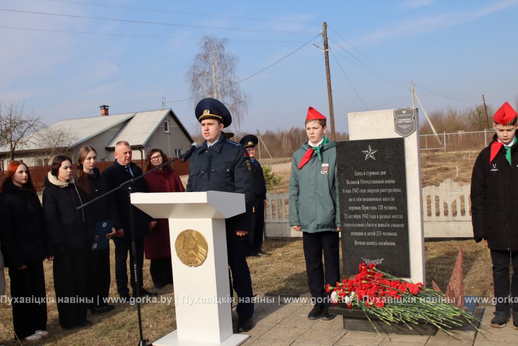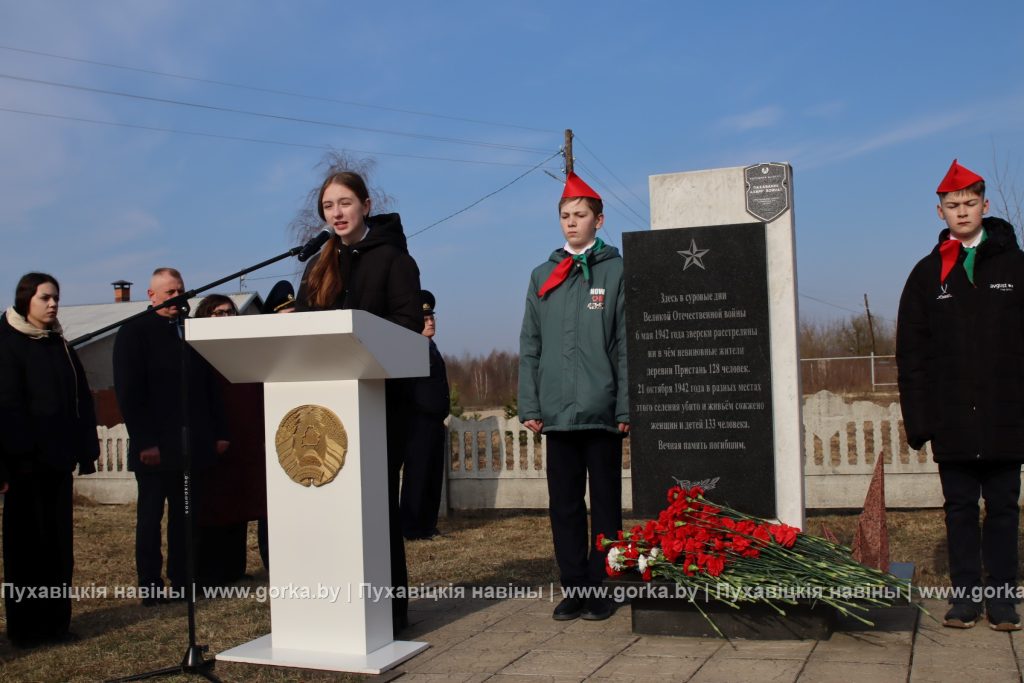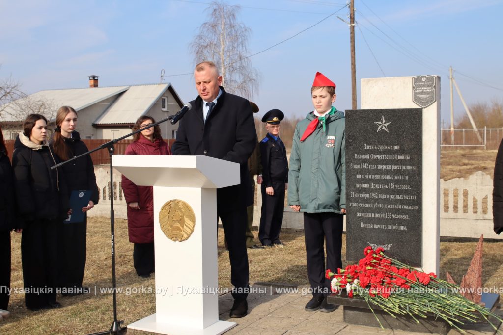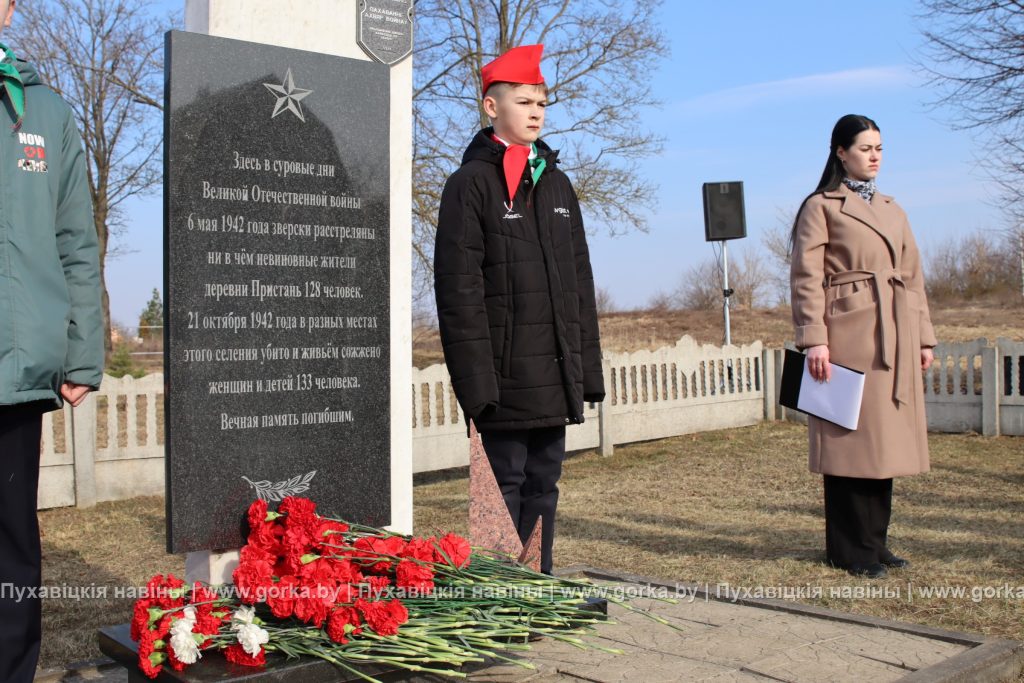 В День 82-й годовщины Хатынской трагедии в деревне Пристань у памятника жертвам фашистских оккупантов состоялся митинг-реквием. В память о земляках, погибших в годы Великой Отечественной войны, представители районного Совета депутатов и районного исполнительного комитета, силовых структур, общественных организаций, ветераны, школьники возложили цветы к подножию обелиска, и почтили память погибших минутой молчания.