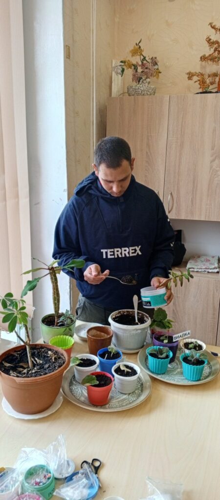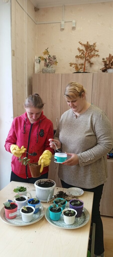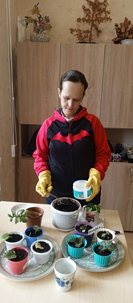В отделении социальной реабилитации, абилитации инвалидов, обеспечения дневного пребывания для граждан пожилого возраста в рамках реабилитационно-трудовой мастерской «Цветочная мозайка» прошло занятие на тему: «Пересадка комнатных растений»