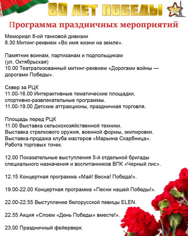 Афиша праздничных мероприятий в Марьиной Горке 9 мая