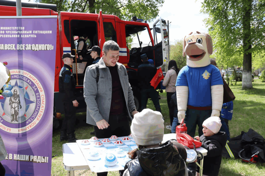 В парке возле районного центра культуры развернулись тематические площадки, где работники МЧС напомнили гражданам о правилах безопасности, создавая атмосферу праздника. Выставка пожарной техники и оборудования привлекли внимание детей и взрослых. Жители Пуховичского района побывали в роли спасателей-пожарных, примеряв на себя боевую одежду.