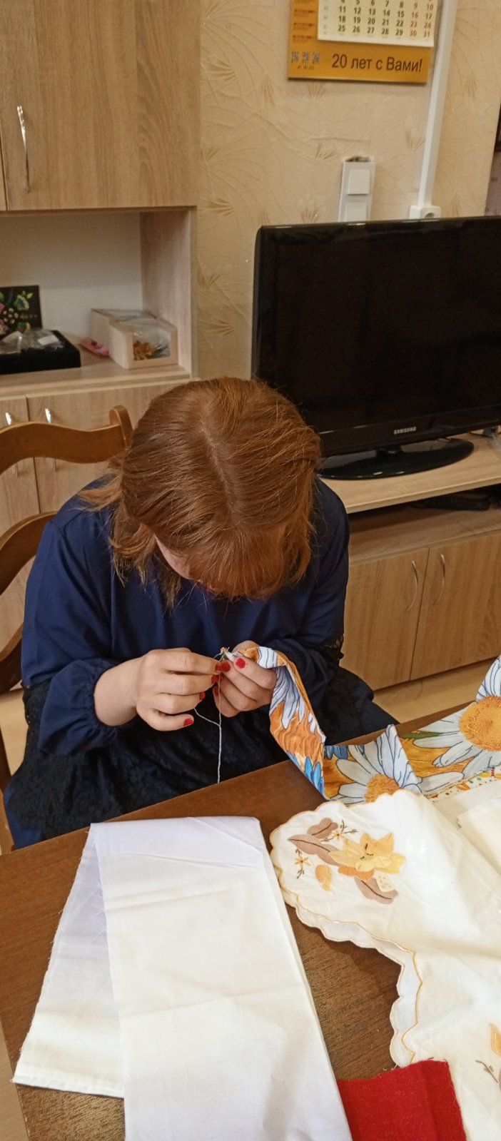 В отделении социальной реабилитации, абилитации инвалидов, обеспечения дневного пребывания для граждан пожилого возраста в рамках реабилитационно-трудовой мастерской «Иголочка» прошло занятие на тему: «Отделка лентой стачных швов и техника исполнения рюш»
