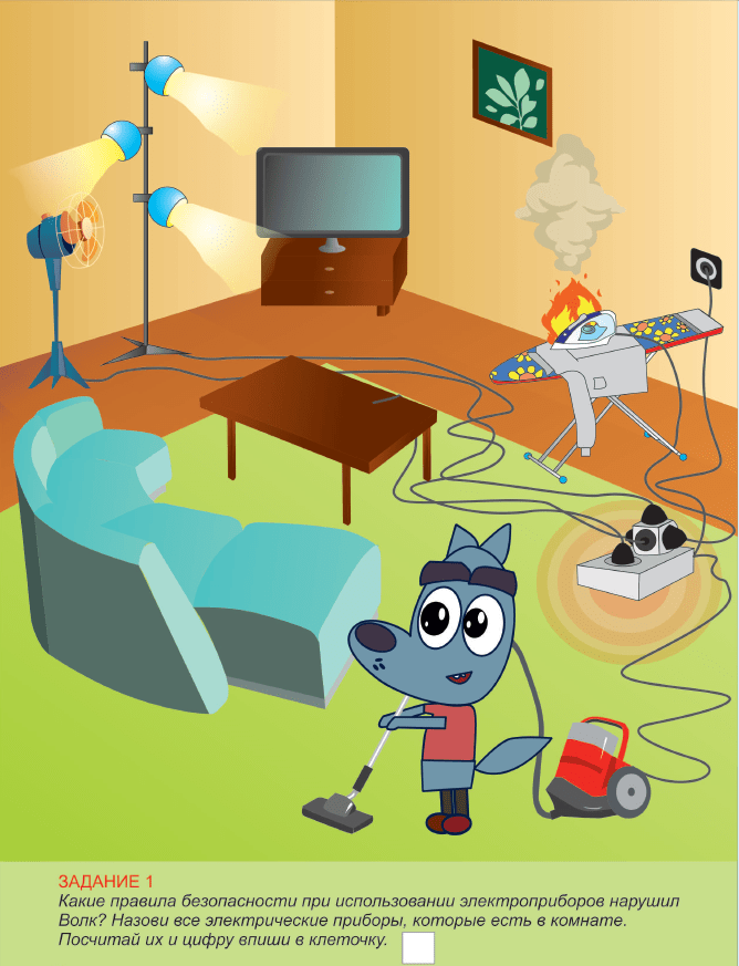 Обратите внимание на электробезопасность. Проверьте исправность электропроводки и электроприборов. Не позволяйте детям пользоваться неисправными приборами или вставлять посторонние предметы в розетки.