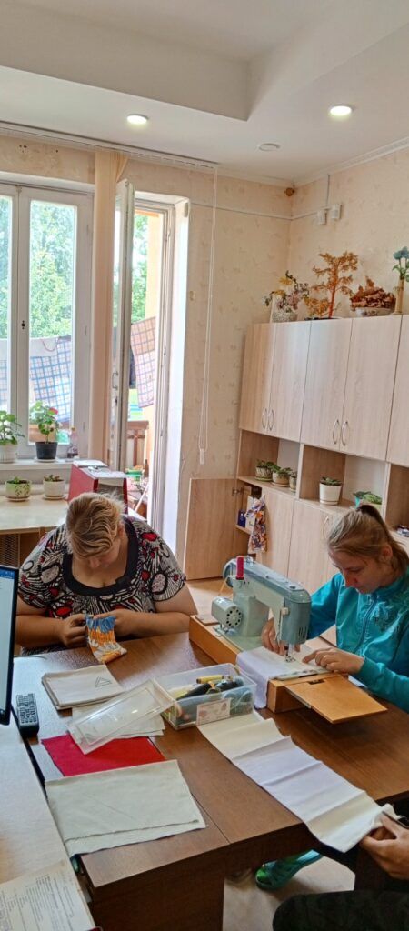 В отделении социальной реабилитации, абилитации инвалидов, обеспечения дневного пребывания для граждан пожилого возраста в рамках реабилитационно-трудовой мастерской «Иголочка» прошло занятие на тему: «Изготовление салфеток из ткани с элементами аппликации на швейной машине»