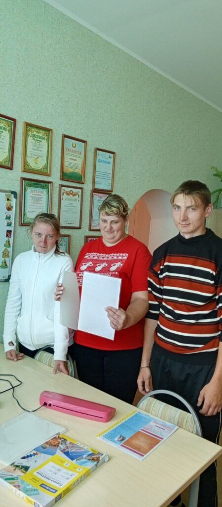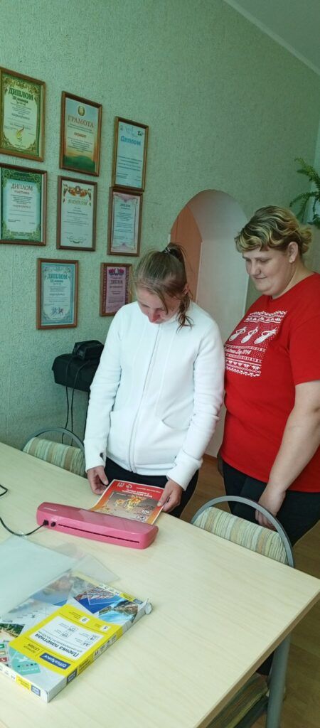 В отделении социальной реабилитации, абилитации инвалидов, обеспечения дневного пребывания для граждан пожилого возраста в рамках реабилитационно-трудовой мастерской «Все краски жизни» прошло занятие на тему: «Работа на ламинаторе»