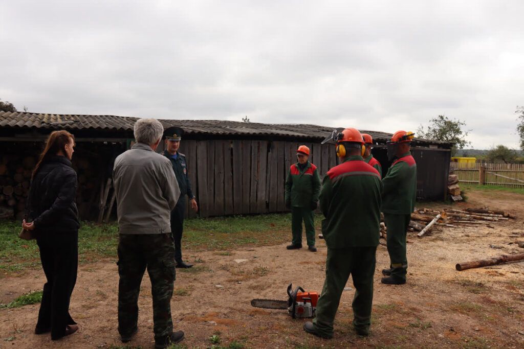 Третья часть учений была посвящена отработке действий при чрезвычайной ситуации, вызванной неблагоприятными условиями. По легенде, в результате сильного ветра произошел завал деревьев, который ограничил подъезд к котельной в агрогородке Бор. На место условного происшествия прибыл персонал спасательной группы коммунальной службы. Проведя первичную оценку обстановки, они приступили к расчистке территории: распиливали поваленные деревья, очищали подъезд к котельной. Для выполнения работ персоналом спасательной группы была привлечена группы механизации работ.