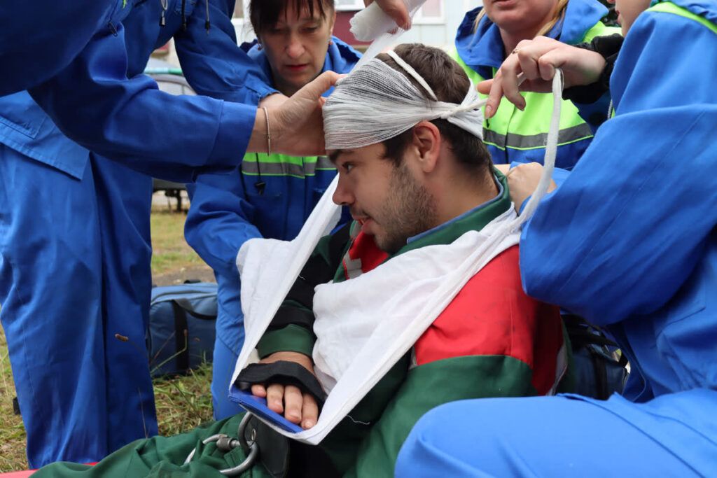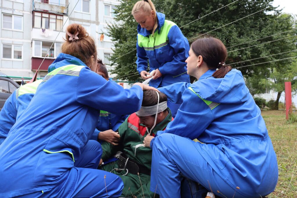 По легенде второго этапа учений, во время проведения ремонтных работ слесарь по ремонту оборудования тепловых сетей оступился и упал в тепловую камеру. В результате падения он получил перелом правой лучевой кости и ушибленную рану головы, что сделало невозможным его самостоятельное передвижение.