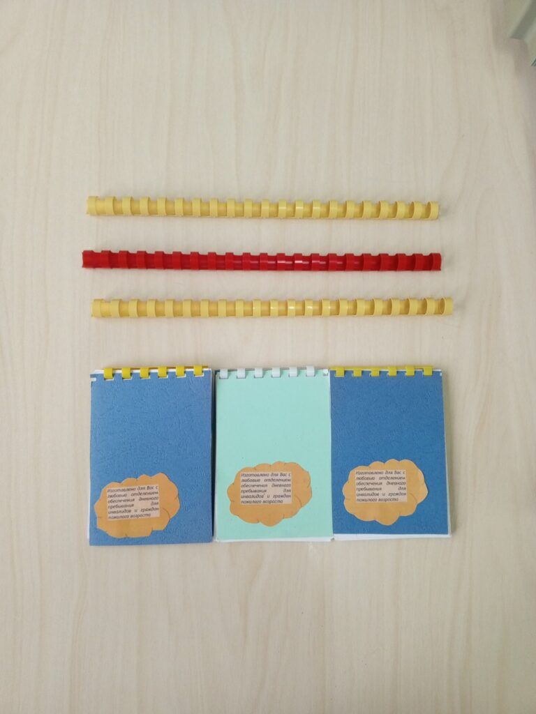 В Государственном учреждении «ТЕРРИТОРИАЛЬНЫЙ ЦЕНТР СОЦИАЛЬНОГО ОБСЛУЖИВАНИЯ НАСЕЛЕНИЯ ПУХОВИЧСКОГО РАЙОНА» в отделении социальной реабилитации, абилитации инвалидов, обеспечения дневного пребывания для граждан пожилого возраста в рамках реабилитационно-трудовой мастерской «Все краски жизни» прошло практическое занятие на тему: «Изготовление блокнотов».