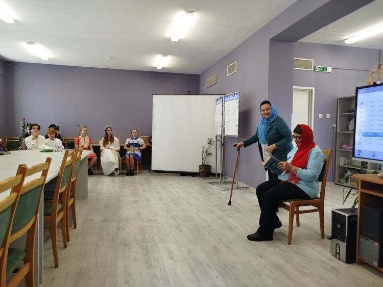В свою очередь пожилые люди, участники кружка «Театральная мозаика», представили свой мини-спектакль «Бабушки и внуки».