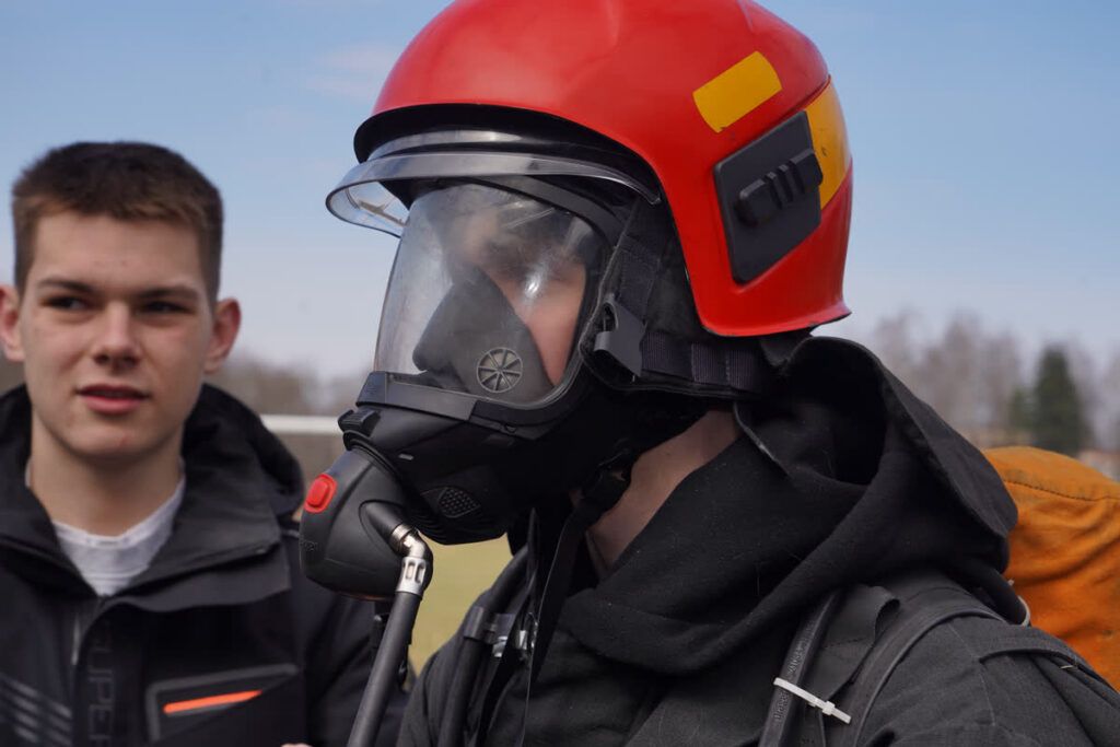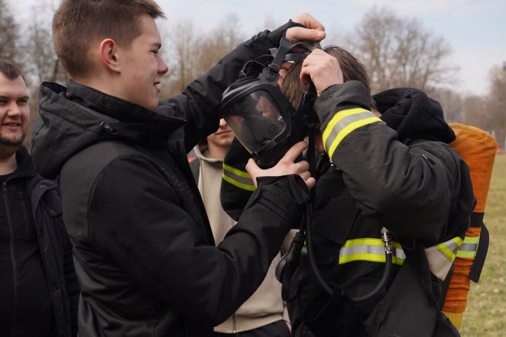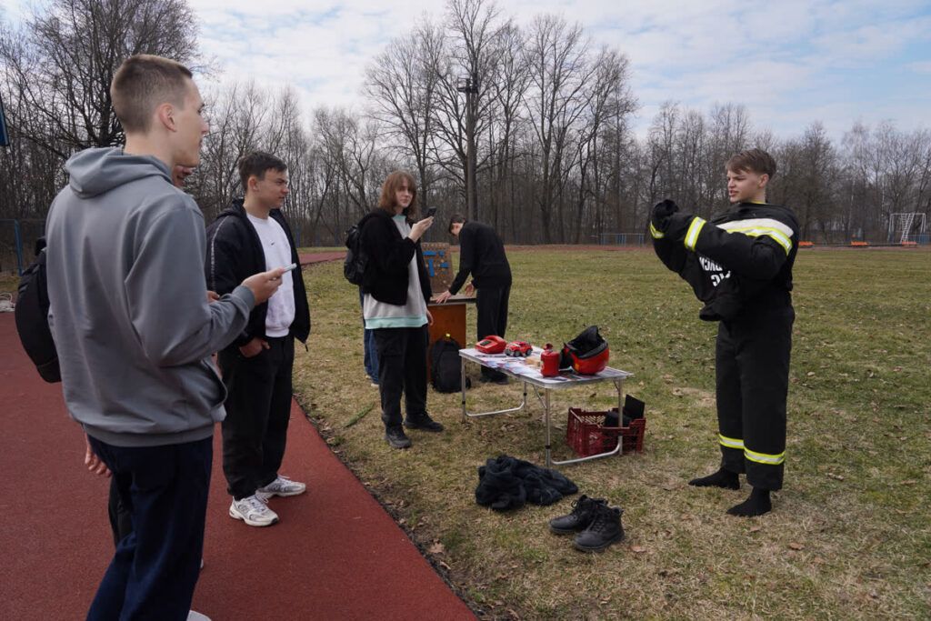 Большой интерес вызвала возможность примерить боевую одежду пожарного. Учащиеся почувствовали, насколько она тяжёлая и как много усилий требует работа спасателя. Рядом была размещена пожарная автоцистерна, где специалисты МЧС подробно рассказали о назначении аварийно‑спасательного оборудования и показали, как оно используется на реальных выездах.