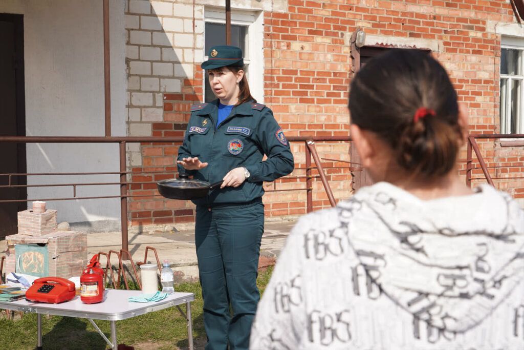 Внимание было уделено и пожарам, происходящим на кухнях. На макете сковороды специалист показала, как правильно действовать при возгорании масла. Она подчеркнула, что категорически нельзя тушить горящее масло водой, поскольку вода мгновенно превращается в пар и разбрасывает горящие капли, увеличивая площадь пожара. Работник МЧС продемонстрировала безопасный алгоритм: накрыть сковороду крышкой, отключить плиту и не перемещать горящую посуду.