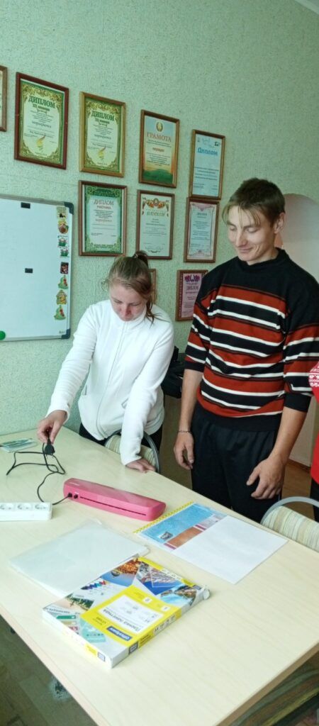 В отделении социальной реабилитации, абилитации инвалидов, обеспечения дневного пребывания для граждан пожилого возраста в рамках реабилитационно-трудовой мастерской «Все краски жизни» прошло занятие на тему: «Работа на ламинаторе»