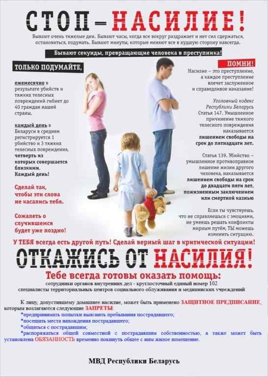 В соответствии с Законом Республики Беларусь «Об основах деятельности по профилактике правонарушений» к лицам, допускающим насилие в семье, применяются также меры индивидуальной профилактики: