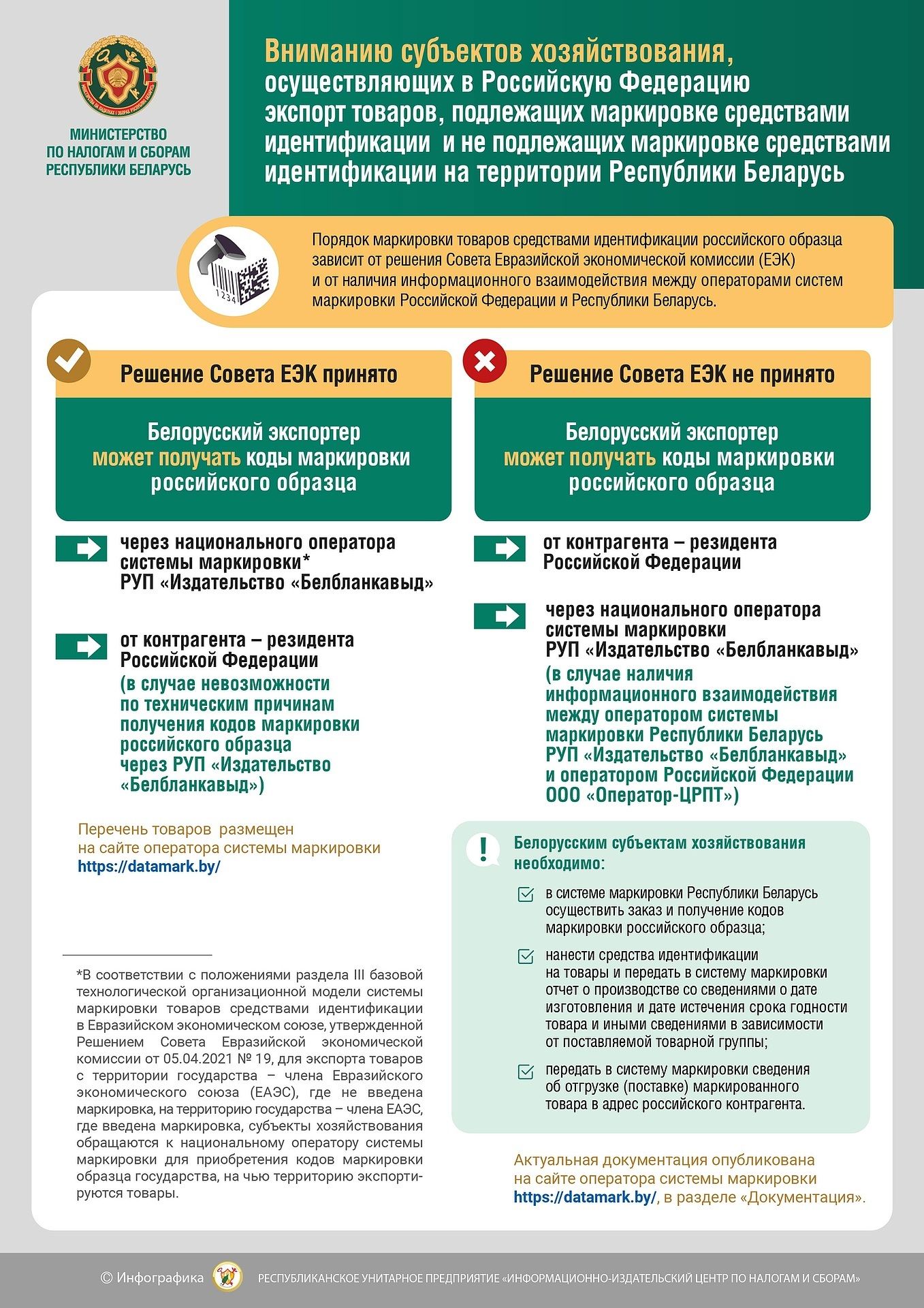 РУП «Информационно-издательский центр по налогам и сборам» информации, в зависимости от причин, обусловивших наличие выявленных несоответствий, субъект хозяйствования предпринимает меры, направленные на их устранение, в том числе: