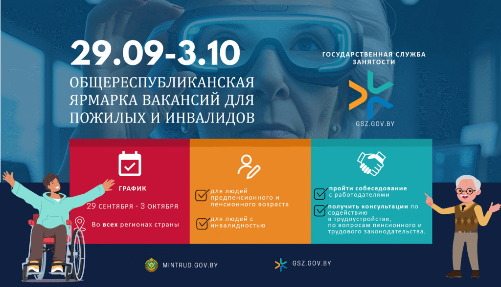 Общереспубликанская ярмарка вакансий для лиц «серебряного» возраста и инвалидов, имеющих профессиональные и трудовые рекомендации пройдет с 29 сентября по 3 октября 2025 года