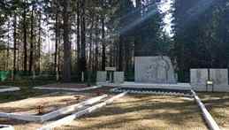 ![]() | Братская могила 1920, 1944 гг. д.Дукора урочище Пуща 17.05.1920 г. в урочище Пуща в 3 км. на северо-запад от деревни Дукора после жестоких пыток были расстреляны 11 партизан, участников борьбы против польских оккупантов, на территории Игуменского и Минского уездов в 1919-1920 гг. После освобождения Беларуси от пльских оккупантов останки партизан были перезахоронены: А.А.Блажко в д.Харевичи, а остальные в д.Пережир, где в мае 1932 г. им поставлен памятник. Дукорским партизанам посвящена пьеса В.Горбацевича «Красные цветы» Белоруссии» и ряд стихотворений белорусских поэтов. В июле 1925 г. памятник поставлен на месте расстрела партизан, обновлён в 1959 г. Здесь же похоронены воины 1-го гвардейского танкового Донского корпуса и партизаны, погибшие в боях против немецко-фашистских захватчиков в 1944 г.Бетонный пятиметровый обелиск, увенчанный красной звездой на металлическом стержне. На фасадной части — мраморная доска с текстом: «В память 16 партизан, погибших за освобождение Советской Родины 17 мая 1920 года в деревне Дукора (ниже 14 фамилий дукорских партизан), и неизвестных воинов и партизан, погибших в 1941—1944 годах». Могила обнесена металлической оградой. |