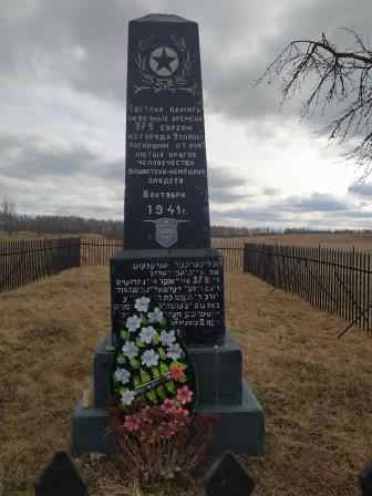 ![]() | Братская могила 1941 г. д.Узляны В братской могиле похоронены 375 мирных жителей еврейской национальности, расстрелянных немецко-фашистскими захватчиками 8 октября 1941 г. В 1953 г. родные погибших поставили в д.Узляны на братской могиле памятник с надписью на идише и русском языке: «Светлая память на вечные времена 375 евреям из деревни Узляны, погибшим от рук лютых врагов человечества, фашистско-немецких злодеев 8 октября 1941 г.». |
